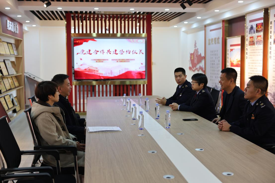 教工党支部副书记曲晔与第一税务分局党支部书记刘莹分别介绍了各自党支部的党建工作情况,分享了党建工作的经验和做法,并围绕共建协议的具体条款进行了深入讨论,正式签订了党建共建协议。