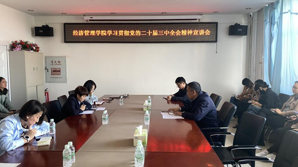 为深入贯彻习近平总书记关于宣讲工作的重要指示,扎实推进学习宣传贯彻工作,推动我院迅速兴起全会精神学习宣传贯彻热潮,按照学校关于学习贯彻党的二十届三中全会精神宣讲工作的有关要求,学院院长刘楠教授于9月24日17点在主楼2-3教室和9月25日15点在五教402会议室为分别为学生代表和全院教师召开了学习贯彻党的二十届三中全会精神宣讲会。