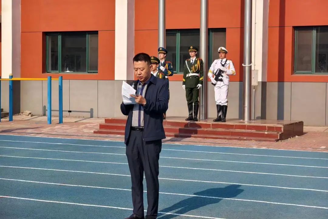 清晨7时,升旗仪式正式开始。国旗护卫队身姿挺拔,迈着整齐有力的步伐,护送鲜艳的五星红旗走向升旗台。随着《义勇军进行曲》响起,全体师生肃穆行礼,目光如炬,齐唱国歌,向国旗致以崇高敬意。