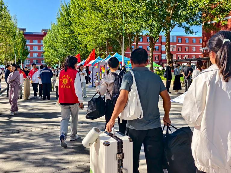 由学生干部组成的志愿服务队是迎新工作的重要力量,他们提前制定轮番值班表开展服务:不仅在报到窗口协助新生核对信息、办理手续,在校园路口引导路线,还帮助新生搬运行李,全程护送直至寝室;同时,学院也格外关爱家庭经济困难新生,提前摸排学生家庭经济困难情况,及时解决贫困生实际困难,并鼓励他们不必为生活担忧、专注学业成长,让贫困生在入学之初便感受到校园的温暖。