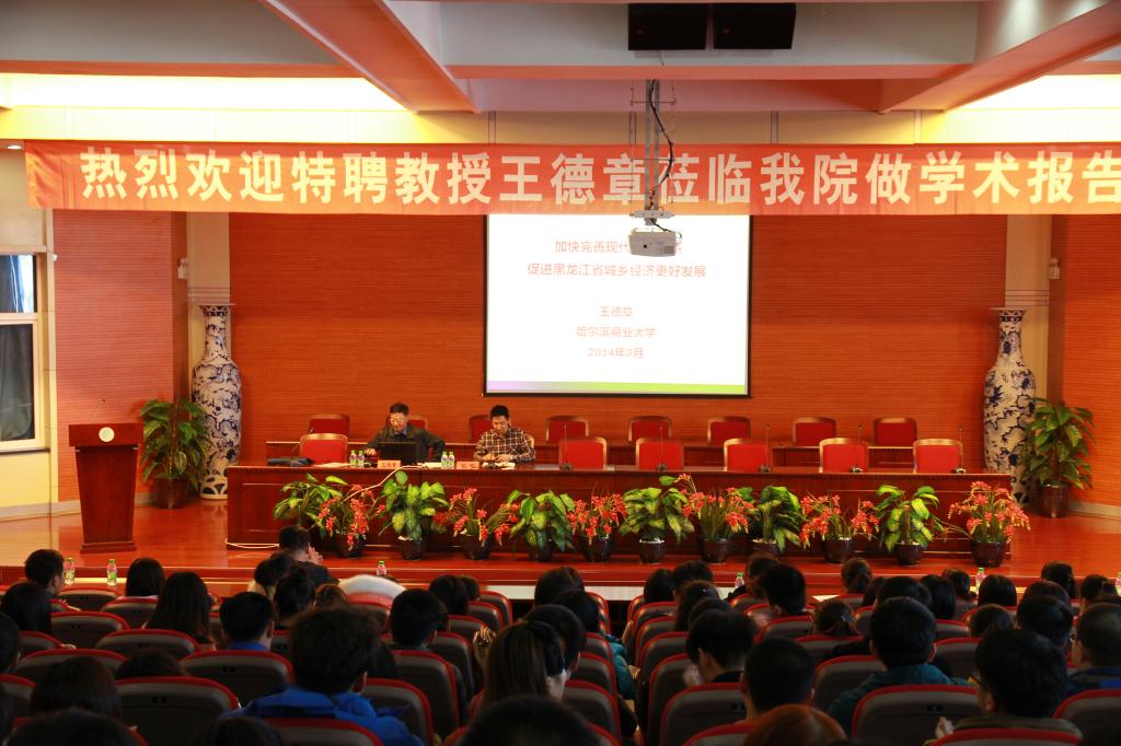 3月18日下午3时30分,原哈尔滨商业大学副校长、博士生导师、kaiyun开云官方特聘教授王德章在博雅讲堂为我院全体师生作题为《加快完善现代市场体系促进黑龙江省城乡经济更好发展》的学术报告。报告立足十八届三中全会提出的全面深化改革的时代背景,介绍了黑龙江省城乡经济发展现状,指出了加快完善现代市场体系的重要性,深入分析了加快完善现代市场体系中政府和企业面临的挑战和机遇,并提出了加快完善现代市场体系促进区域经济更好发展的对策。
