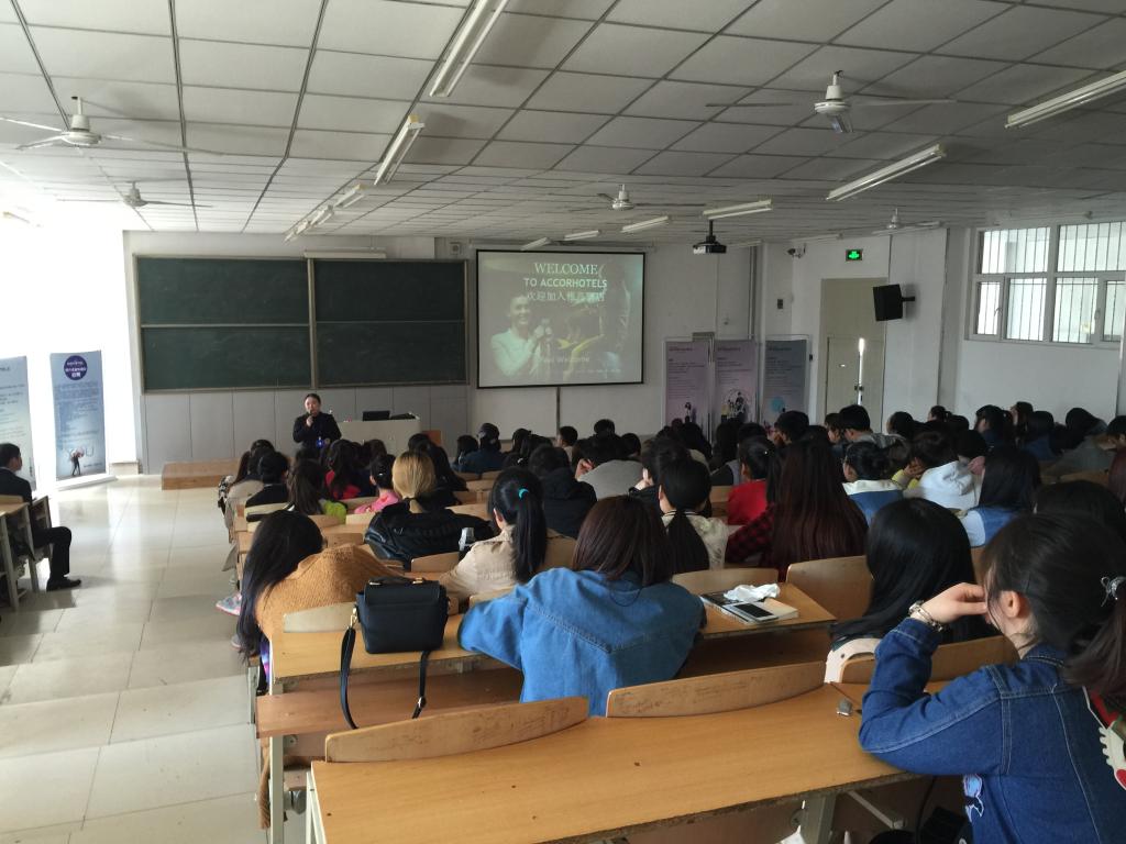 2016年4月20日下午一点半,kaiyun开云官方市场营销系邀请大庆雅高酒店人力资源部经理、学习与发展部经理、西餐部经理、中餐部经理等一行五人来到kaiyun开云官方,对即将进行专业见习的2014级市场营销专业学生和即将进行毕业实习的2013级市场营销专业学生进行校园专场宣讲会,企业先对法国雅高品牌的发展进行了介绍,并欢迎学生加入大庆雅高酒店,同时给我院营销专业学生提供了专门的管理实习生岗位,和完善的未来职业规划,在场学生都很积极的向宣讲人员提问。宣讲会后直接在现场进行了现场面试,待企业进行进一步筛选后成功入选的同学即可准备为期3个月和1年的实习了。