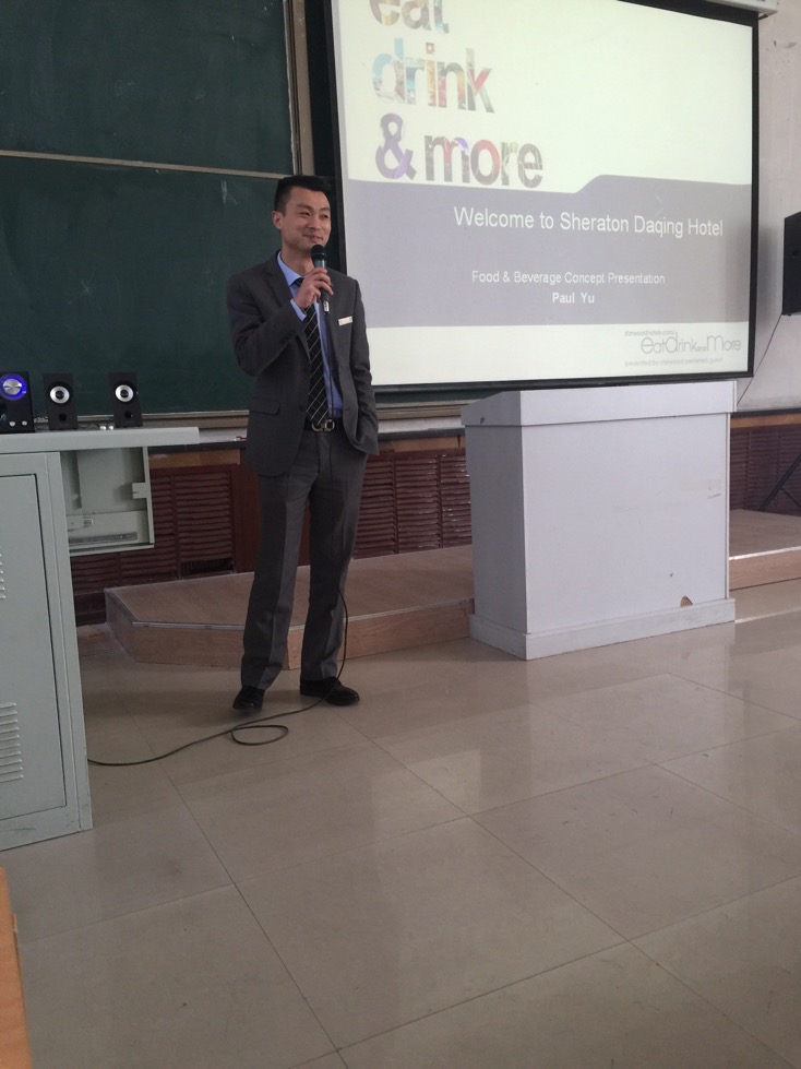 大庆万达喜来登酒店人力资源部总监江总对企业文化和岗位细则做了全面的解读,学生都很感兴趣。餐饮部总监于总对学生即将到岗实习的餐饮部做了详细介绍。会后直接在现场对申请大庆万达喜来登的同学进行了简单的面试,做更深入的了解,以便安排适合每位学生的岗位。