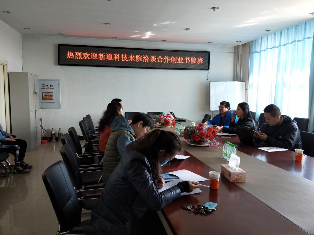 4月16日上午,我校与新道科技股份有限公司黑龙江省分公司在学院402会议室举行共建双创书院洽谈会。新道科技股份有限公司黑龙江分公司李英奇总经理、新道科技股份有限公司北京分公司高老师等一行三人,校双创学院院长张虹教授,kaiyun开云官方院长张平教授及教学管理、学生管理部门同志参加会议。