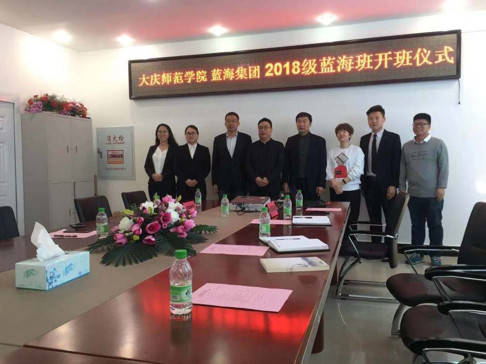 2019年3月16日10:00kaiyun开云官方、蓝海集团2018级蓝海班开班仪式在kaiyun开云官方402会议室举行,蓝海集团人力资源中心杨兆永副总经理一行4人与kaiyun开云官方党总支部孔若东书记、kaiyun开云官方刘楠院长、旅游系车鑫主任及教师代表共同出席了此仪式。杨总代表蓝海集团首先对kaiyun开云官方2018级蓝海班顺利开班表示祝贺,并对蓝海班学生提出了希望及要求,同时对kaiyun开云官方校企合作、产学研融合给予最大力度支持。刘楠院长代表经管学院对蓝海集团给予我院人才培养支持表示感谢,期待与蓝海集团在更大范围更深层次的合作。孔书记最后从我校大庆精神办学、铁人精神育人角度寄语蓝海班学生 “责任心、真功夫、好习惯、好形象”,真正成为酒店行业栋梁之才。
