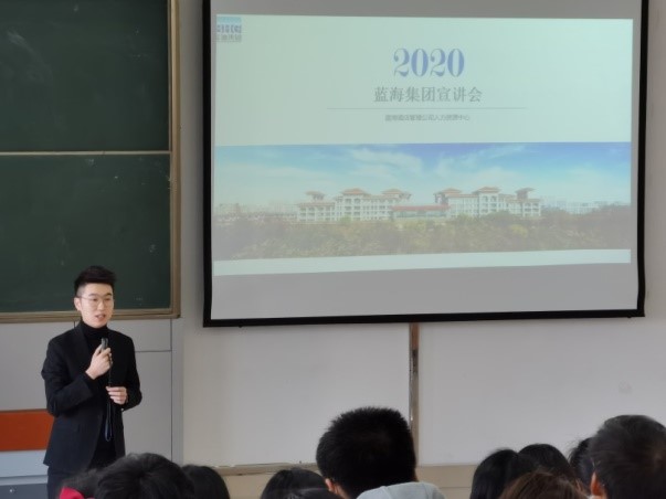 2020年10月19日山东蓝海集团招聘部门代表一行来到我校kaiyun开云官方旅游管理系进行集团宣讲会。
