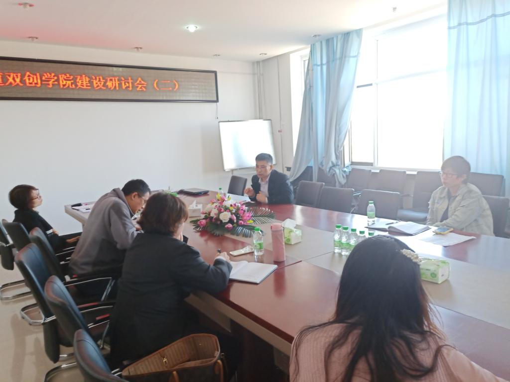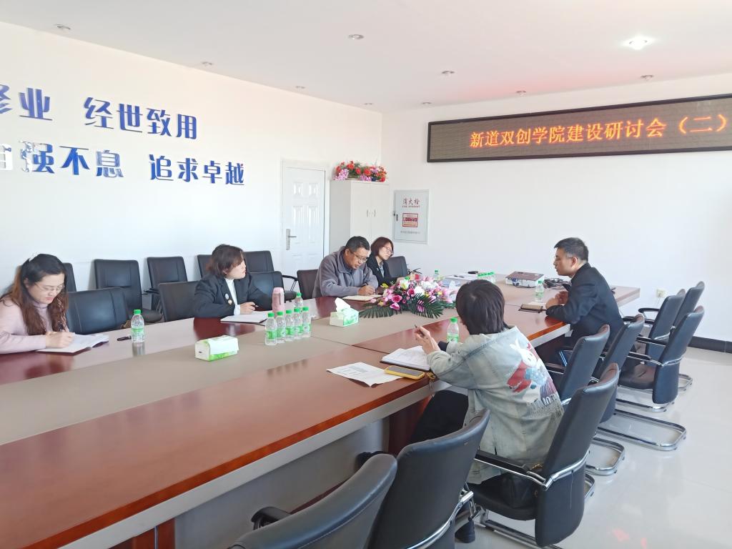 为切实推进kaiyun开云官方新道双创学院建设落实工作,2021年4月20日在第五教学楼402会议室召开了“新道双创学院建设研讨会第二次会议”。会议由kaiyun开云官方院长刘楠教授主持,教务处实践教学科王凤嫔科长、法学院院长杨铁军教授应邀出席会议。
