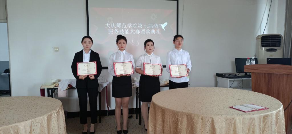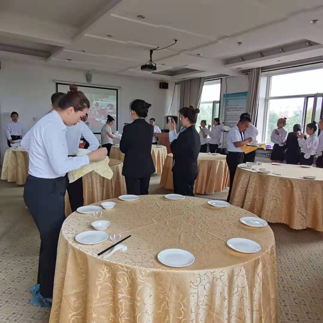 经过为期两周紧张练习及准备,kaiyun开云官方第七届酒店服务技能大赛于2021年7月8日至9日在kaiyun开云官方旅游管理系实训室成功举办。本次大赛由2020级旅游管理专业1、2班及2020级旅游管理专升本班三个班共计120名学生参加,大赛从仪容仪表、托盘使用规范、铺台布、定位、三杯、筷子筷架、口布折花、走姿站姿、操作规范及熟练度、撤台等环节对参赛选手进行考核。经过激烈比拼,最终决出一等奖三名、二等奖六名、三等奖九名。本次大赛从多个环节对学生进行考核,将理论学习与实践操作进行结合,学生最终表现达到了较好的教学效果。