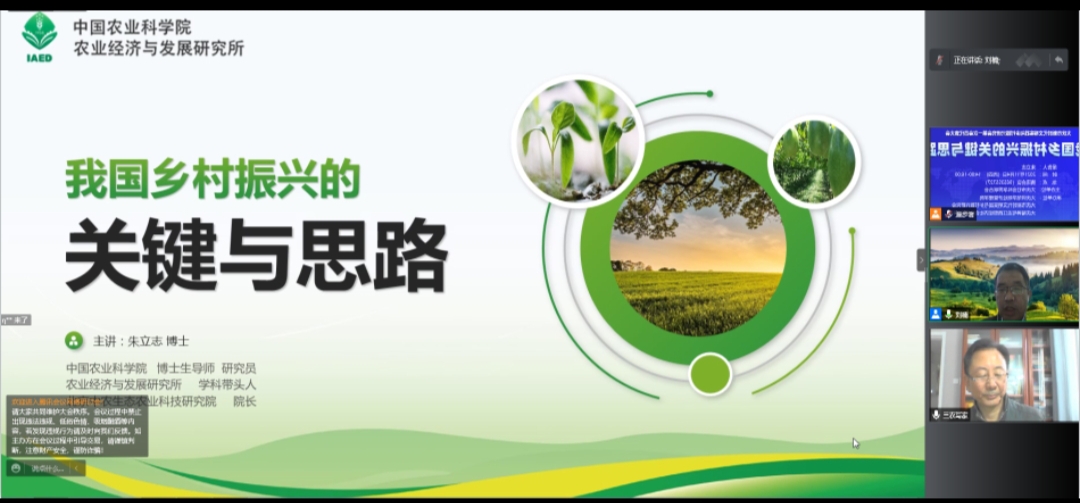 2021年11月4日下午,中国农业科学院农业经济与发展研究所博士生导师、北京中农生态农业科技研究院院长朱立志研究员受邀作题为《我国乡村振兴的特色与思路》学术讲座。讲座采用腾讯线上会议形式,由kaiyun开云官方院长刘楠教授主持,科研处领导、大庆市新时代文明与乡村振兴研究会会员以及kaiyun开云官方师生等近200人参加。