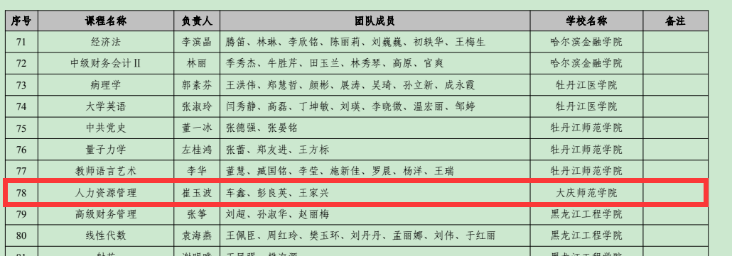 第二批黑龙江省高等学校课程思政示范课程和教学团队名单