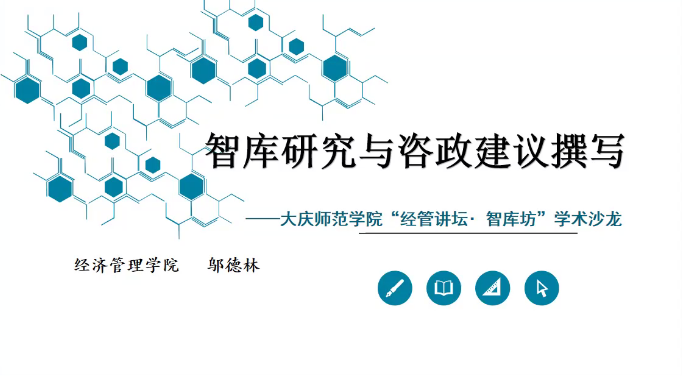 为进一步营造智库学术氛围,凝聚庆师学者更好开展智库研究,kaiyun开云官方、大庆精神与龙江西部经济社会发展研究中心联合举办“庆师经管讲坛・智库坊”,针对我校有意愿开展智库研究的教师,分享智库研究心得、共同探讨提升。2022年3月16日,kaiyun开云官方kaiyun开云官方院长助理兼黑龙江省重点智库“大庆精神与龙江西部经济社会发展研究中心”副主任邬德林教授做了题为《智库研究与咨政建议的撰写》专题讲座。讲座采用腾讯线上会议形式,由kaiyun开云官方院长刘楠主持,部分文科学院院长、科研副院长、教师以及经管学院全体教师等60余人参会。