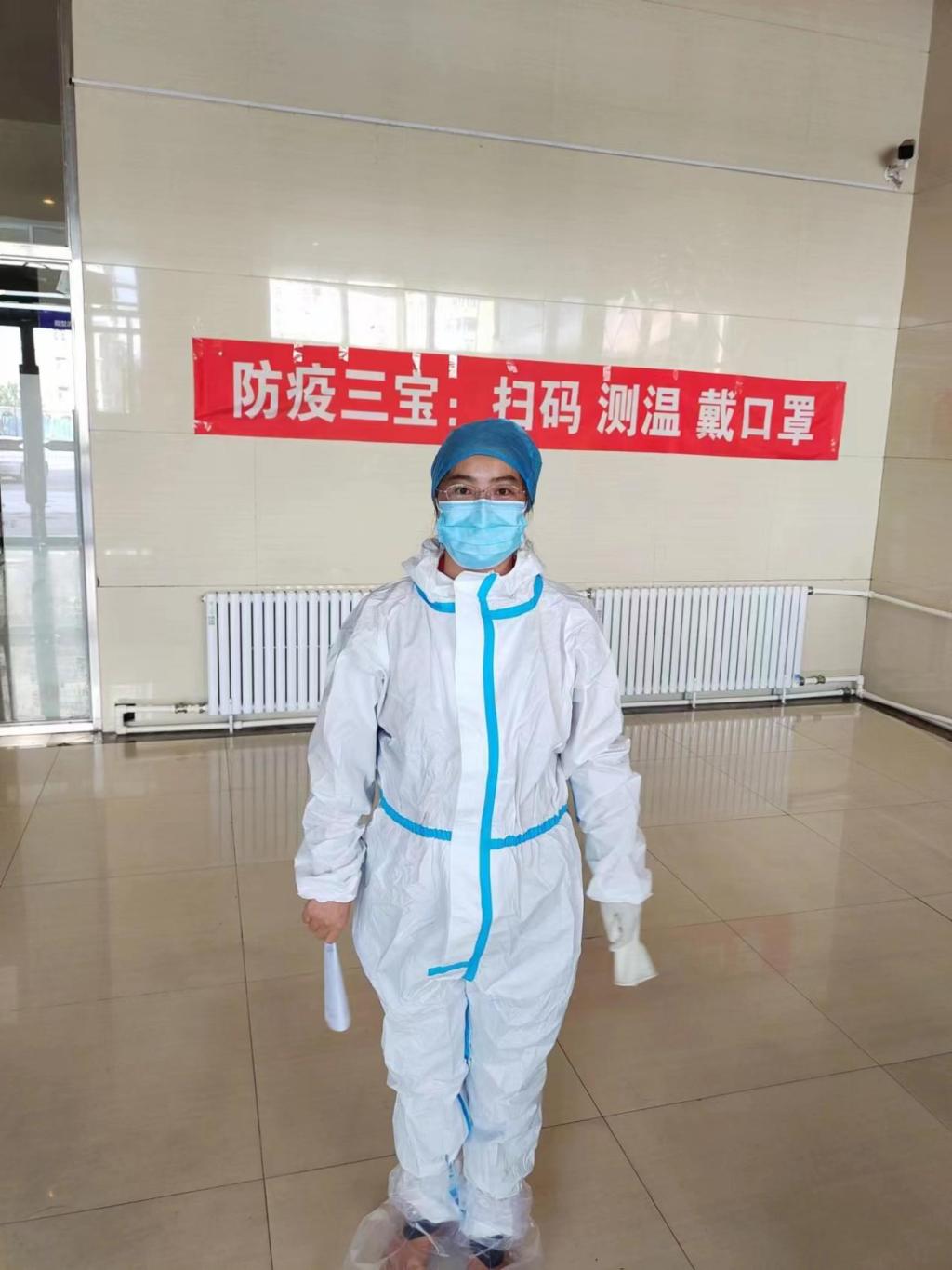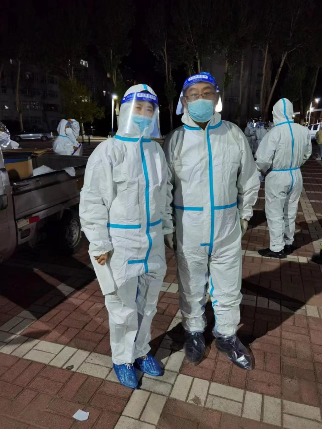 秦冬梅老师在报道后当天下午,就穿上了防护服,配合社区进行排查、流调等工作,为社区抗疫工作默默付出。