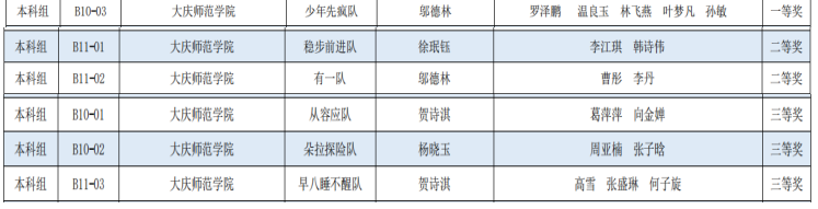 经过层层选拔,从校赛中选出14支队伍参加区域赛,并在区域赛中获得二等奖6项,三等奖8项。10月23日全国总决赛落下帷幕。我院学生表现非常优异,6支参赛队伍全部获奖!其中一等奖一项,二等奖两项,三等奖三项(获奖名单如下图)。