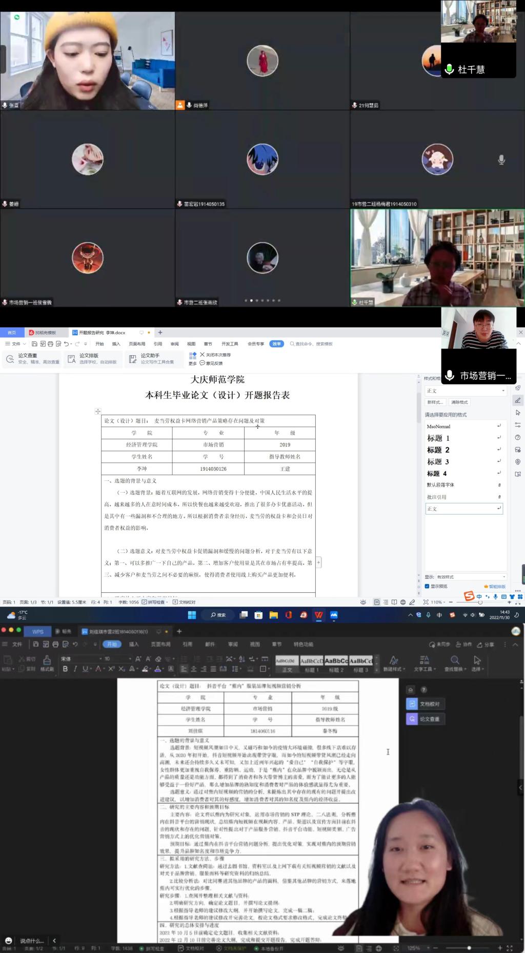 为了更好的开展论文写作和指导,2022年11月30日下午,市场营销系开展2023届毕业生论文开题答辩工作,此次开题答辩采用线上答辩的形式,共三个答辩组,答辩组一:孙伟仁(组长)朱微、秦冬梅;答辩组二:姜鹏(组长)徐珉钰、王剑;答辩组三:尚德萍(组长)姜珊、杜千慧。三个答辩组对112位同学的论文题目进行了认真审核和修改建议,圆满完成开题答辩工作。