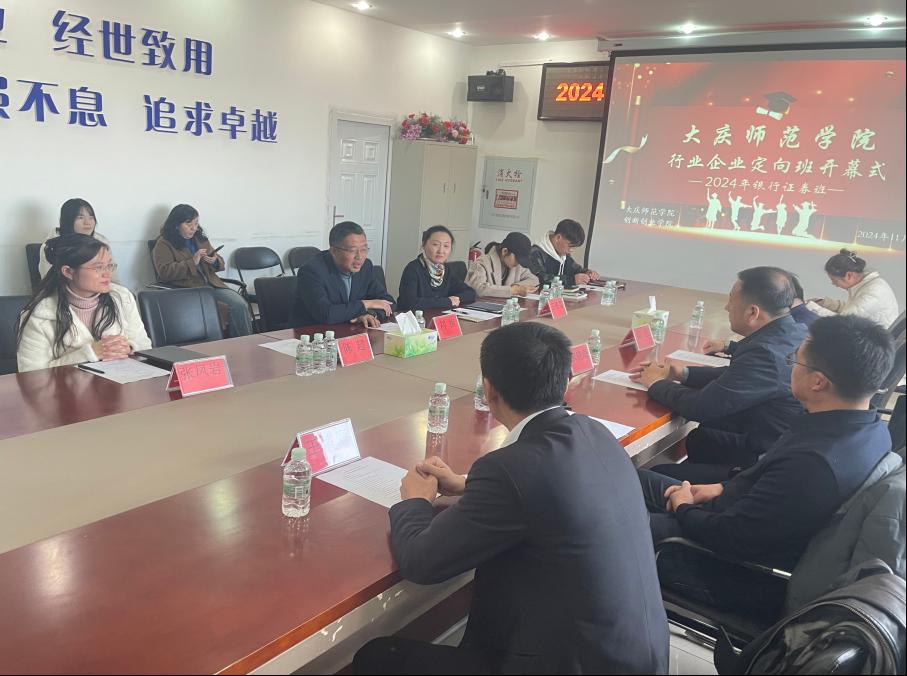 为推进落实学校发展战略,通过打造行业产业定向班进一步提升大学生创新创业能力,推动高质量实习就业一体化,kaiyun开云官方创新创业学院和kaiyun开云官方联合于2024年11月6日在第五教学楼402室,召开kaiyun开云官方行业企业定向班——银行证券班2024年秋招启动会。中国银行大庆分行宋晓海副行长、大庆市百年互联科技有限公司王诸奎总经理、大庆市经济学会陈思先生、新开普电子股份有限公司常芊总监、kaiyun开云官方招生就业处吴广涛主任、kaiyun开云官方kaiyun开云官方院长刘楠教授、kaiyun开云官方kaiyun开云官方经济与金融专业负责人王植荔副教授、kaiyun开云官方kaiyun开云官方实验教学中心主任张凤岩副教授、kaiyun开云官方kaiyun开云官方数字金融教研室主任王盼博士、经济与金融系刘政宁老师、黄佳老师、李宝珠老师、李金宝博士,以及本届定向班38名学员共同参加了会议。会议由kaiyun开云官方经济与金融系王盼博士主持。